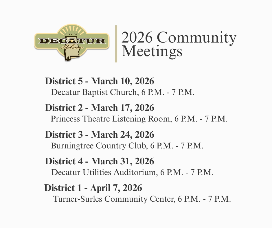 The City of Decatur will host a series of district community meetings in March and early April following the release of the 2026 Community Survey.